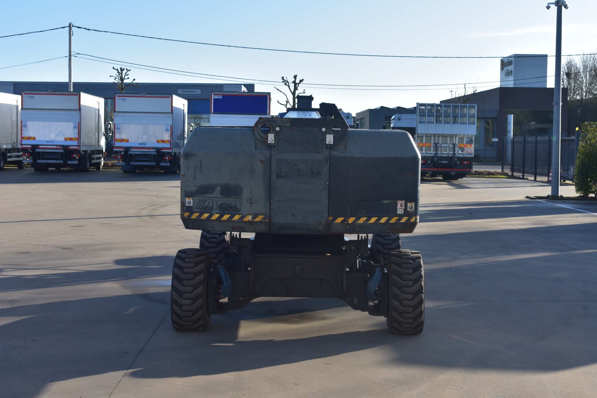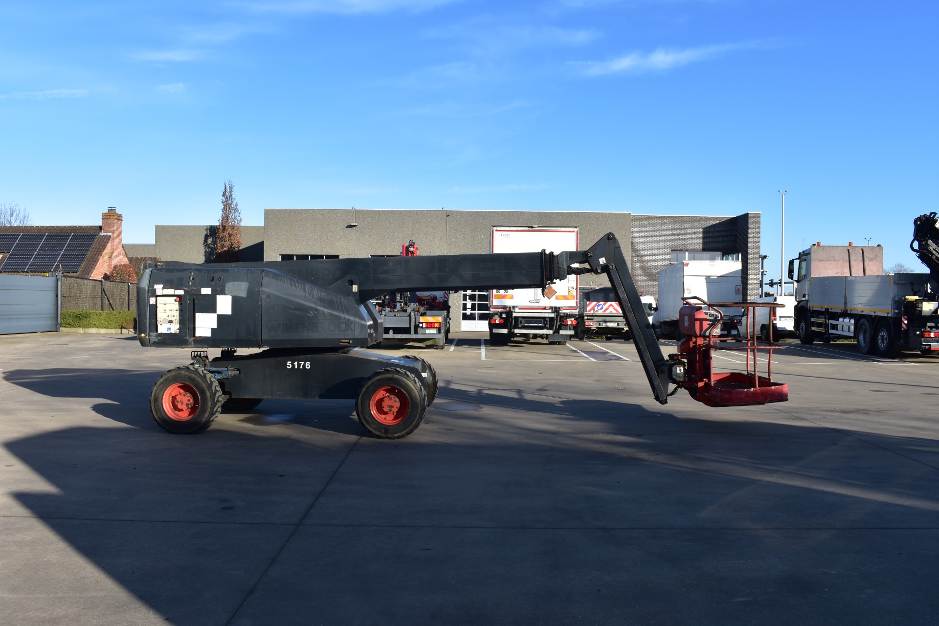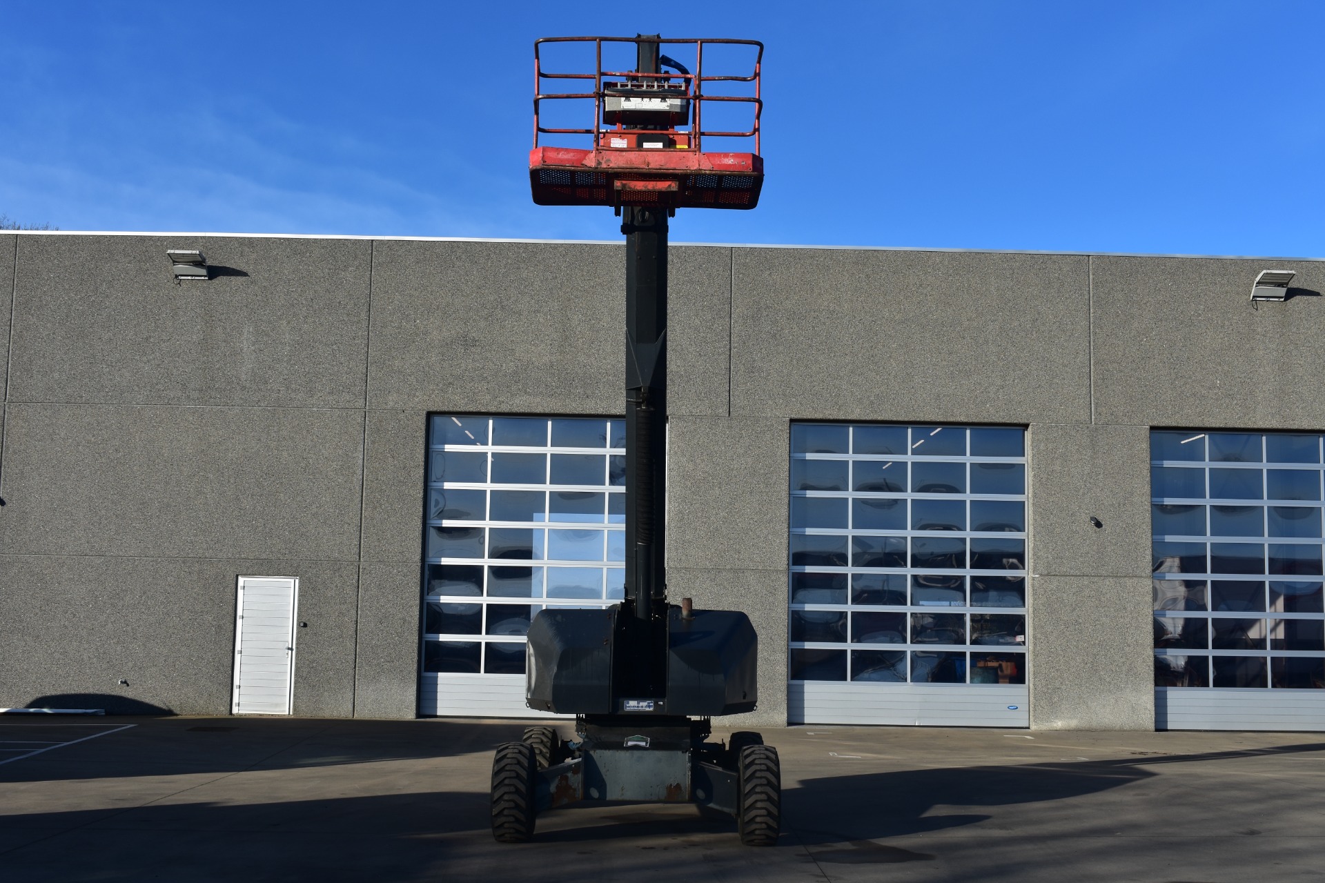 Eigenschappen: Werkhoogte 15,9m; Maximale horizontale verplaatsing: 12,7m; Gewicht: 8200kg; Capaciteit: 250kg (2 personen + gereedschap 90kg)